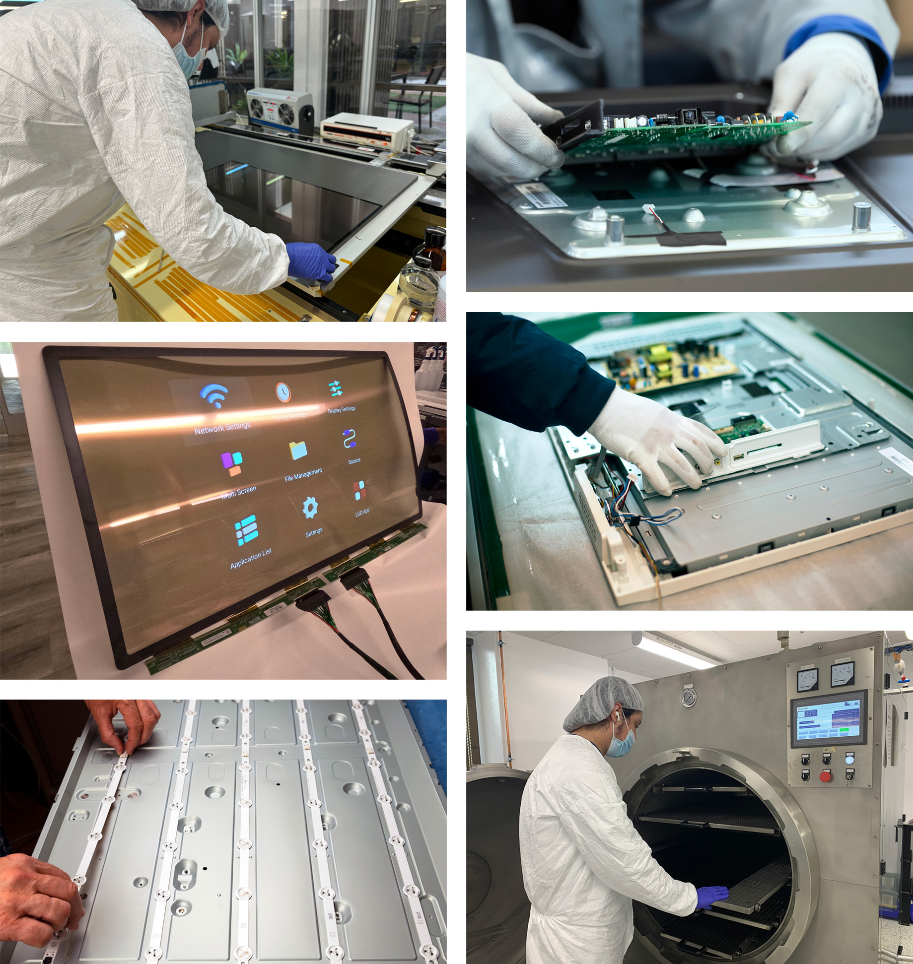 Solutions to your application needs and meet specifications. Design consideration will include the type of high brightness, high color gamut, panel cutting, panel etching, and film lamination.