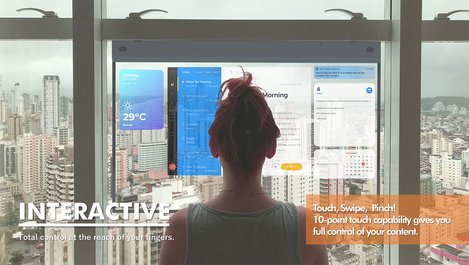 Turn your environment into a productivity masterpiece with the intuitive and luxurious display of Transparent OLED Display with 10-points multi touch.
