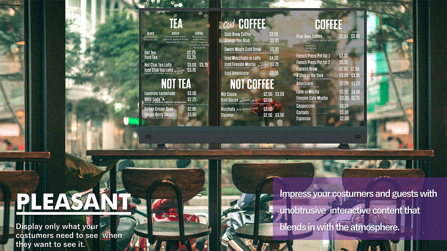 Transparent OLED Display blends into its surroundings seamlessly and naturally. The display’s see-through view turns places where it is installed into open and interactive spaces.